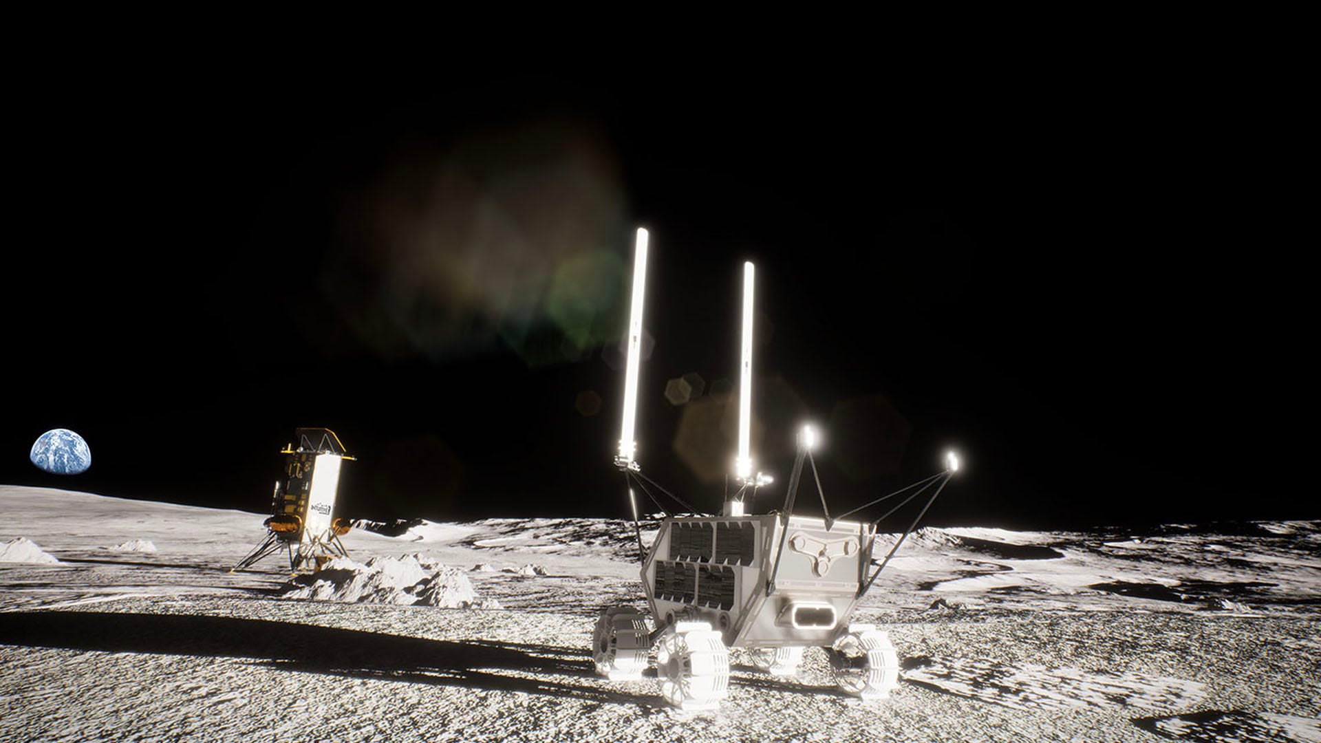Top photo: A rendering of the MAPP rover and Nova-C lander on the Moon’s surface, courtesy of Intuitive Machines